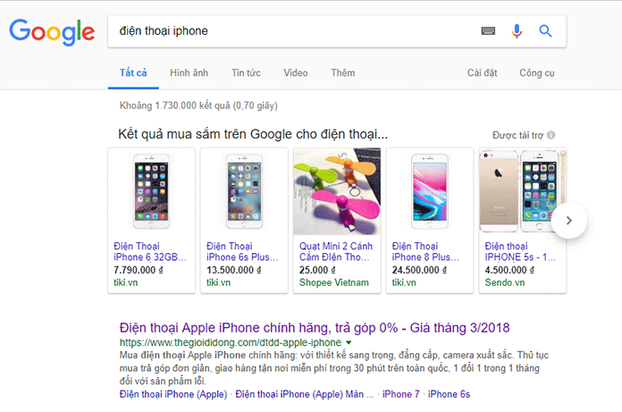 Quảng cáo Google Shopping hiển thị ở vị trí trên cùng và có diện tích lớn nhất trên trang tìm kiếm của Google